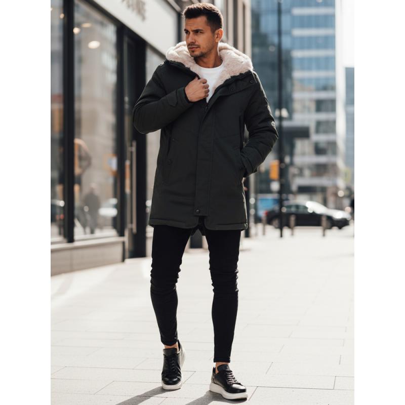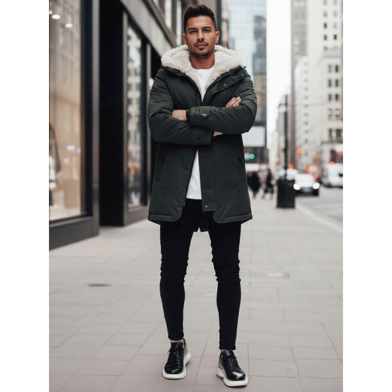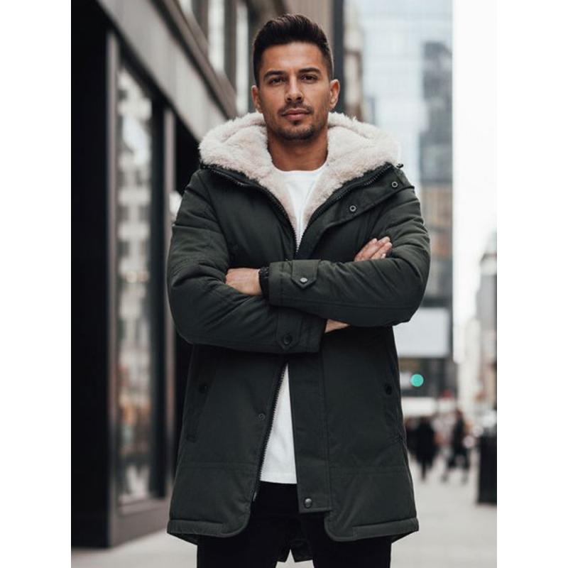 Férfi téli kabát kapucnival, zöld