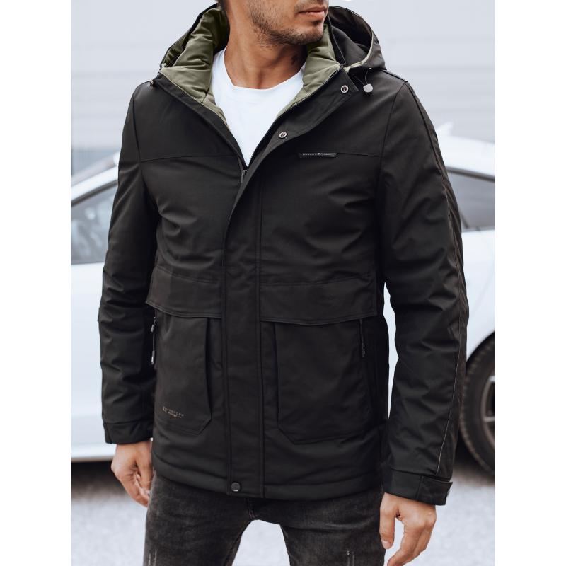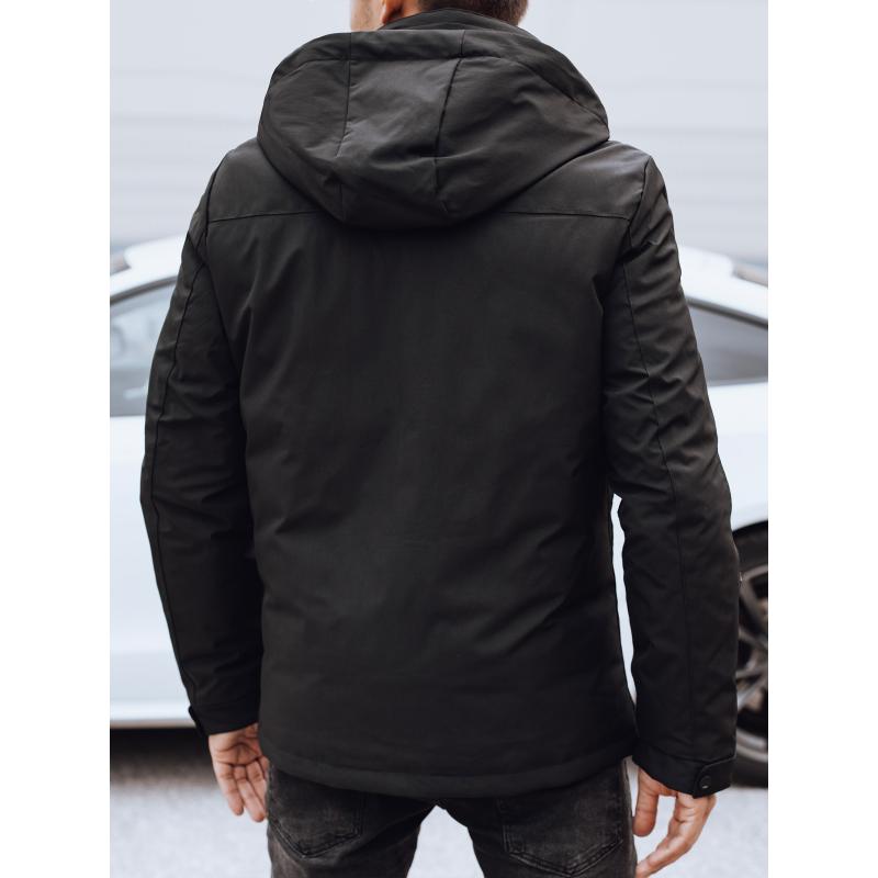 Férfi télikabát levehető kapucnival fekete