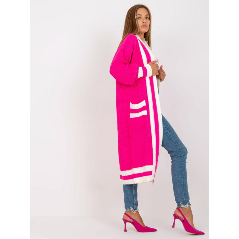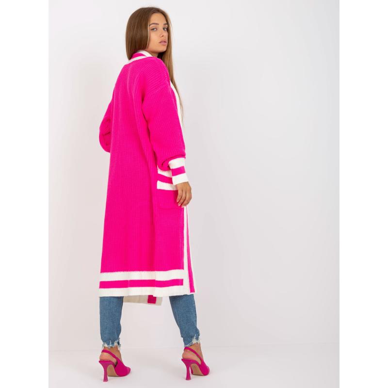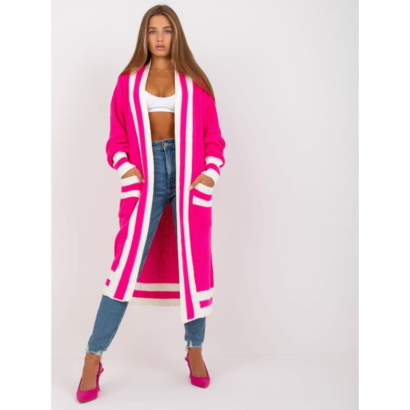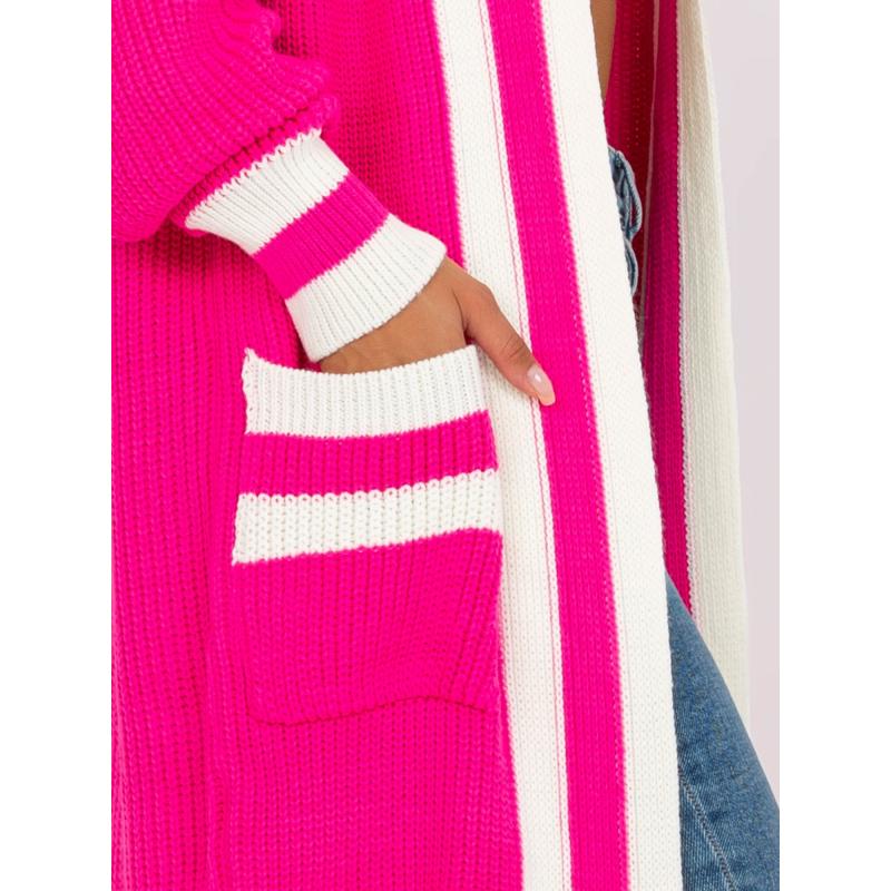 Fluoreszkáló rózsaszín, gomb nélküli, laza kardigán RUE PARIS