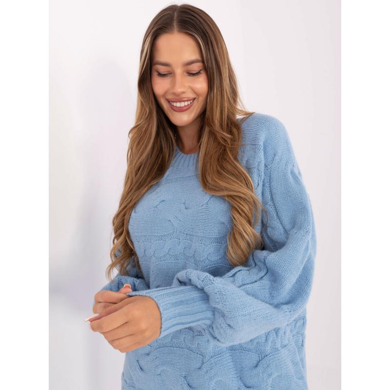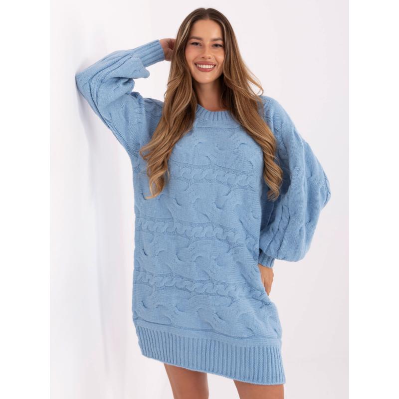 Női hosszú ujjú fél garbó pulóver Világoskék