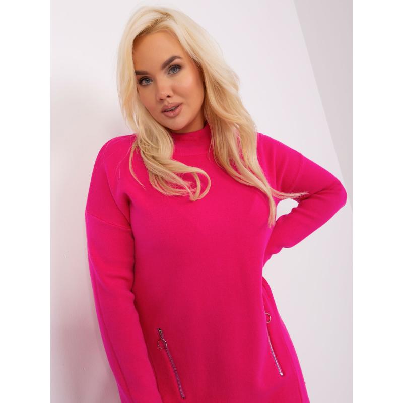 Fluoreszkáló rózsaszín mini kötött ruha copfokkal RUE PARIS