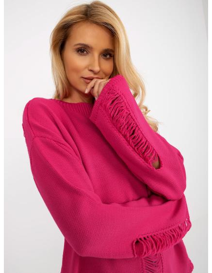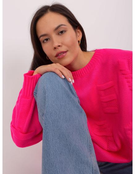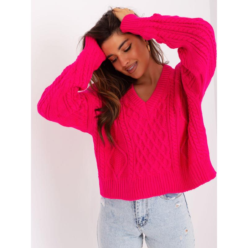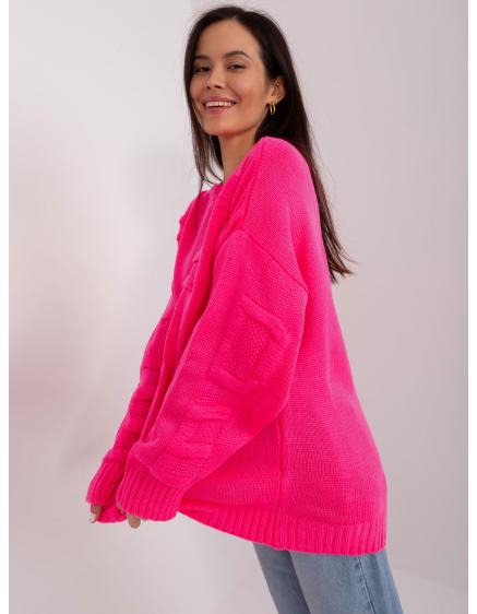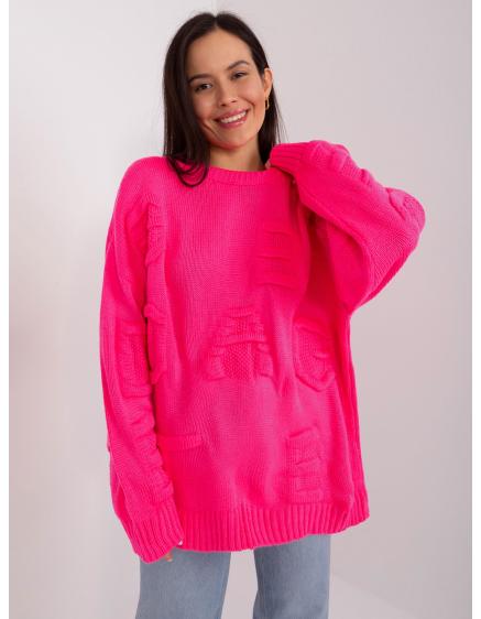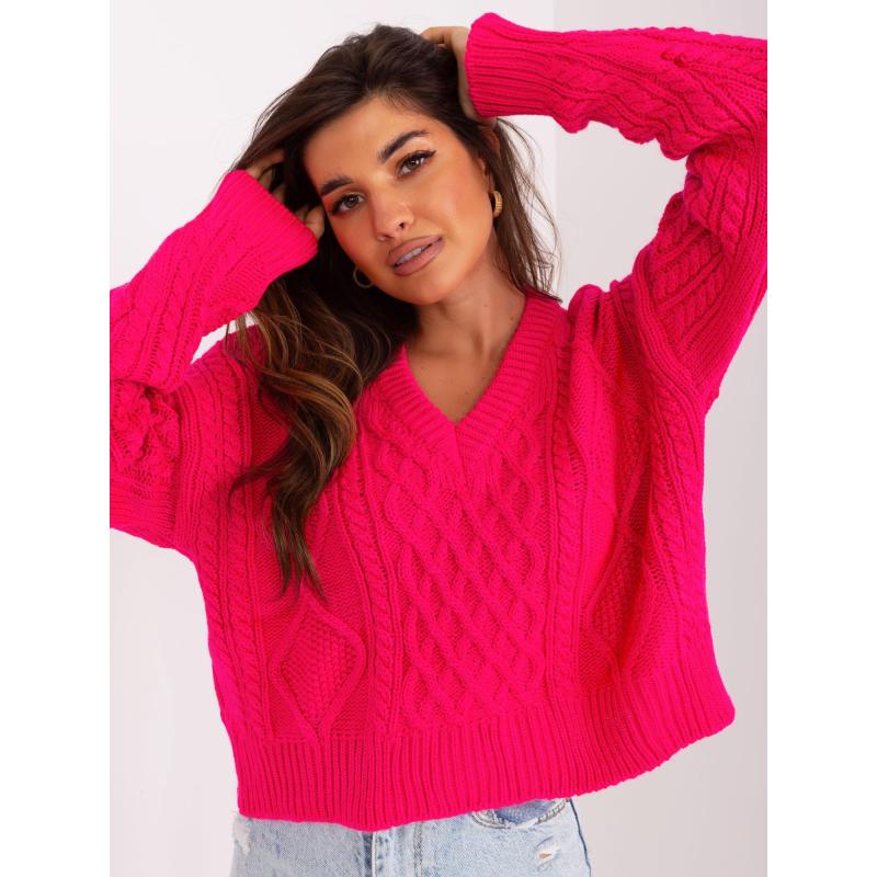 Fluoreszkáló rózsaszín női oversized pulóver gyapjúval