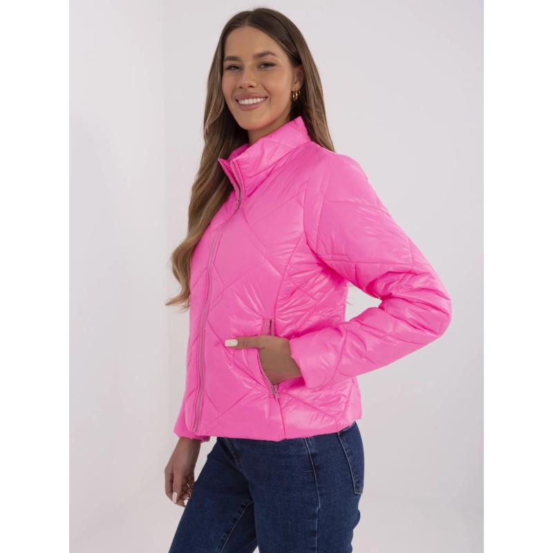 Fluoreszkáló rózsaszín steppelt kabát kapucni nélkül