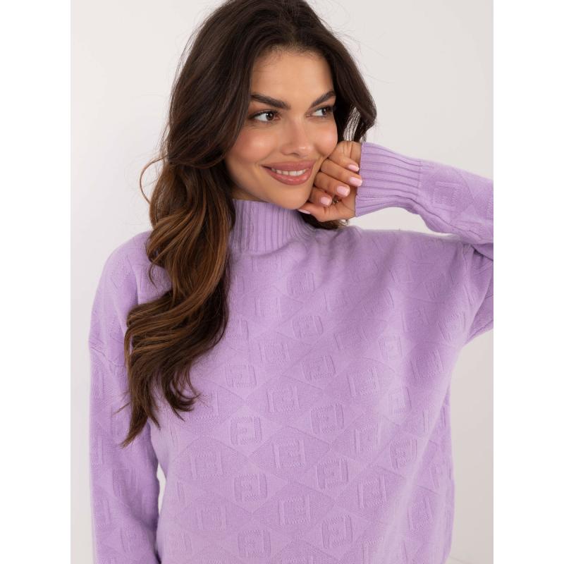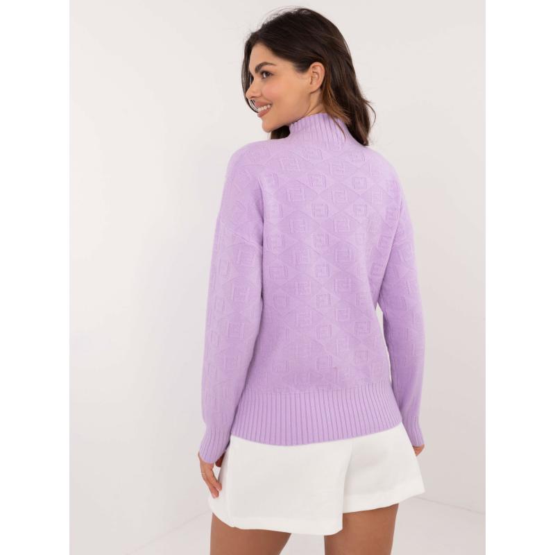 Fukszia csíkos aszimmetrikus pulóver állógallérral