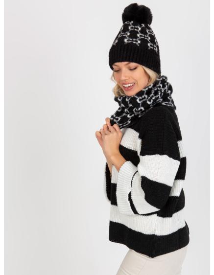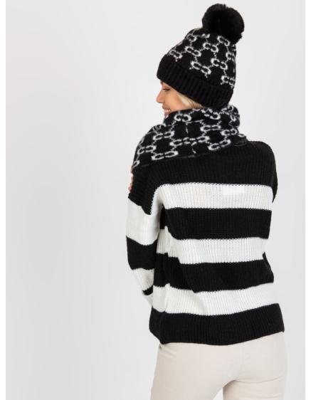 Női mintás kéményes pulóver RYLAN fekete és fehér