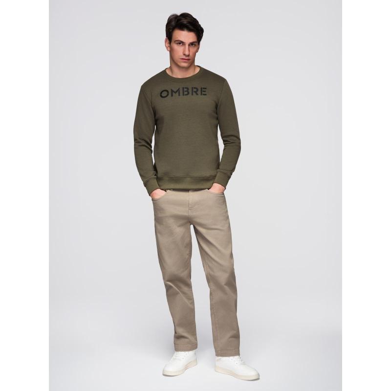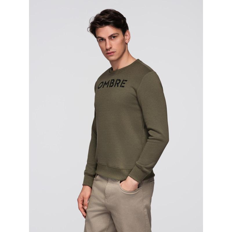 Klasszikus férfi pulóver felirattal – sötét olíva V2 B1711