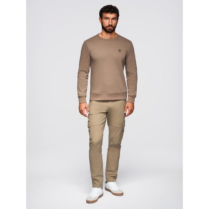 Klasszikus férfi pulóver kerek nyakkivágással – világosbarna V3 OM-SSNZ-0243