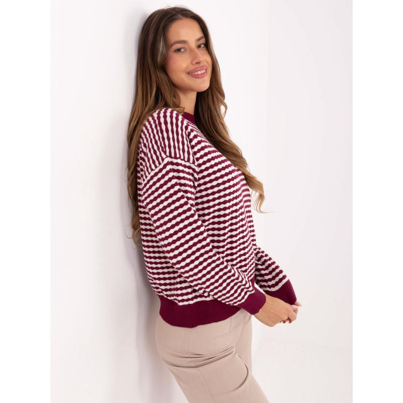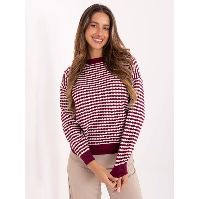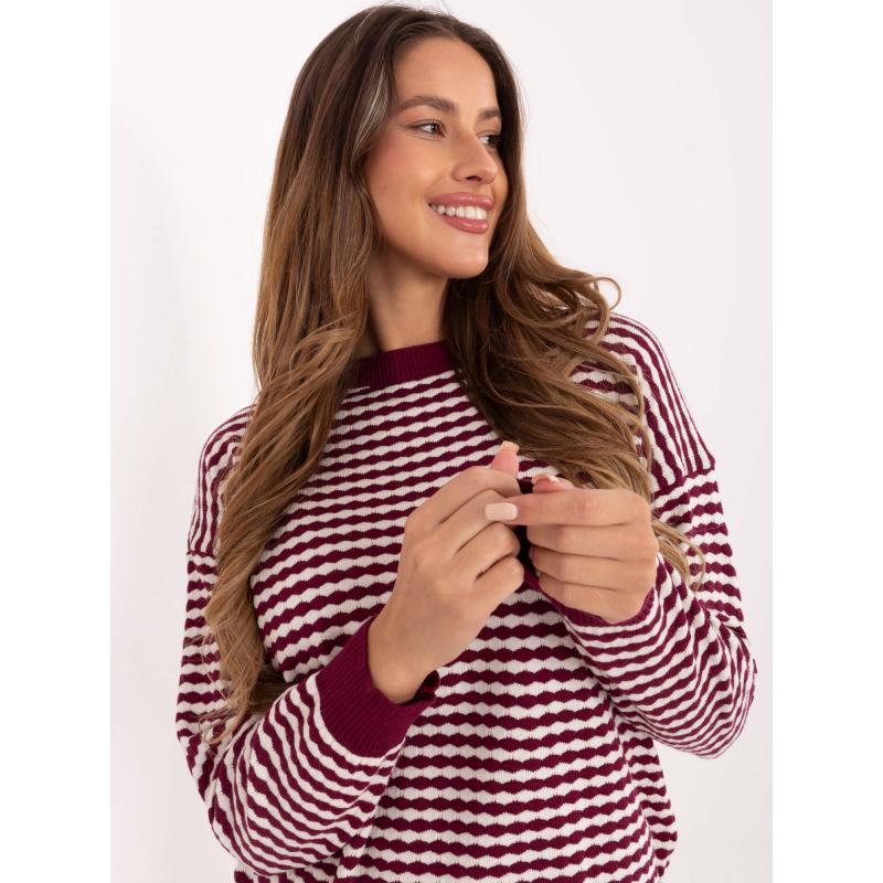 Klasszikus pulóver bordó színben, geometrikus mintával