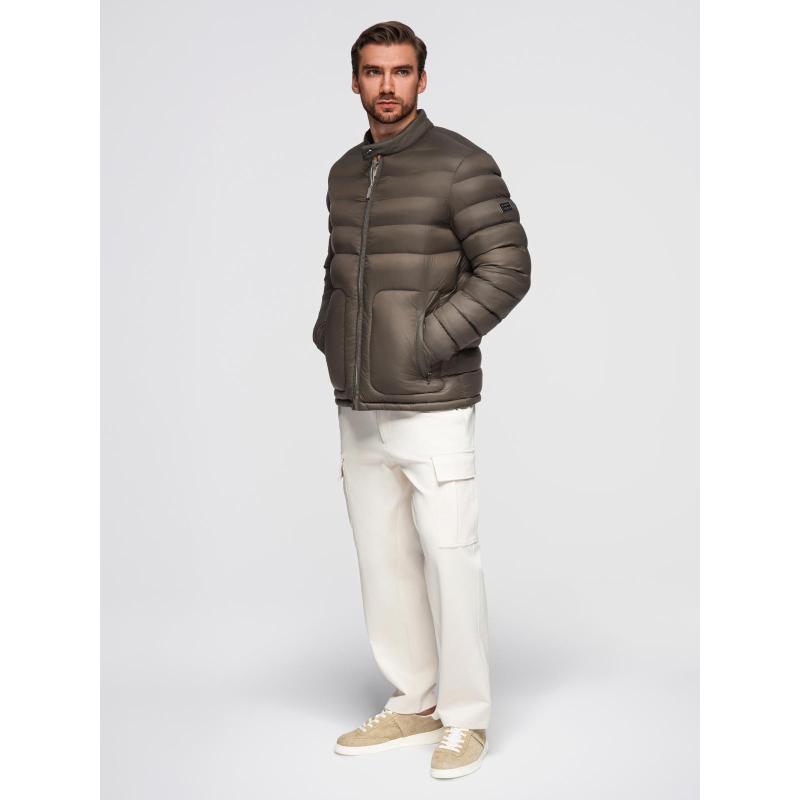 Klasszikus, steppelt férfi kabát állógallérral – olíva V3 OM-JALP-0261
