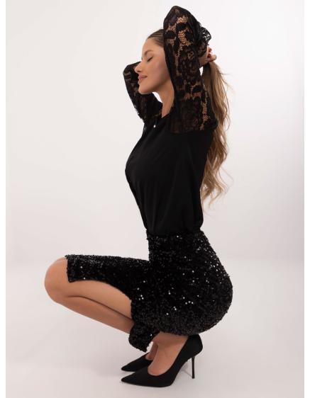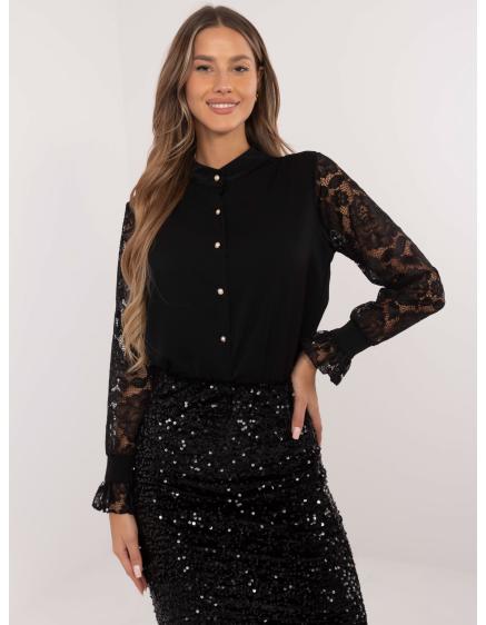 Fekete női ing díszgombokkal