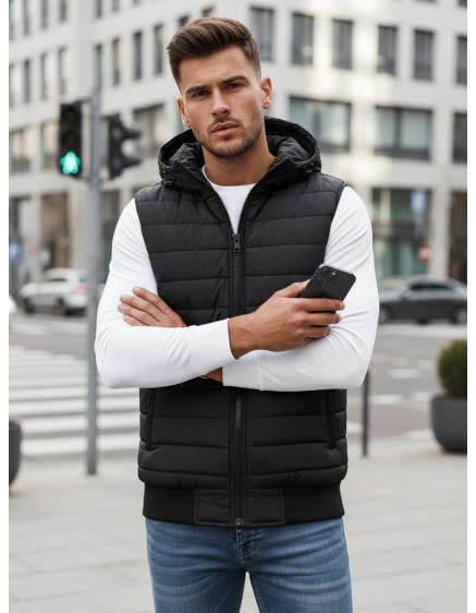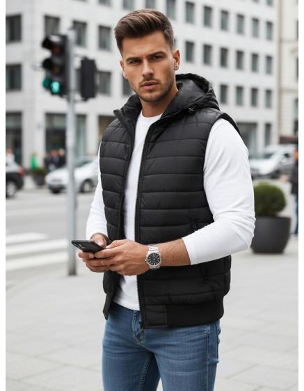 Férfi steppelt kapucnis mellény fekete