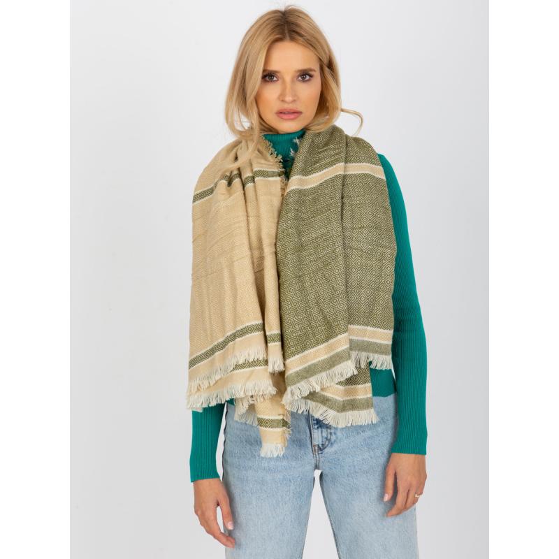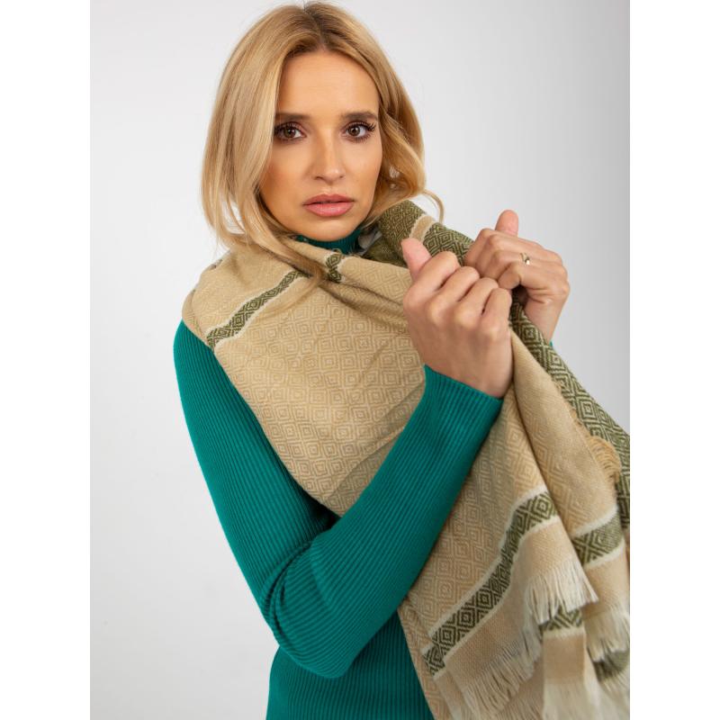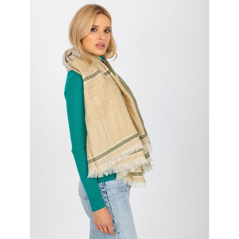Női mintás sál LINA bézs-zöld