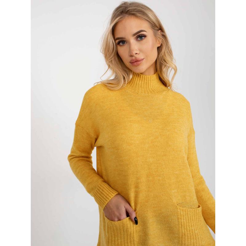 Trendi ruhadarab, amely melegen tart. Ez pontosan Női oversize pulóver zsebekkel RIVERA sárga.