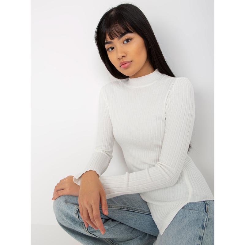 Klasszikus pulóver világos bézs színben, csíkokkal