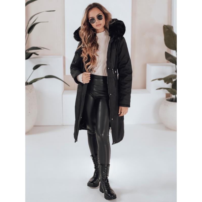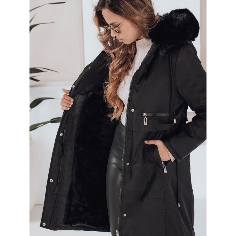 Női téli parka szőrme szegéllyel, fekete