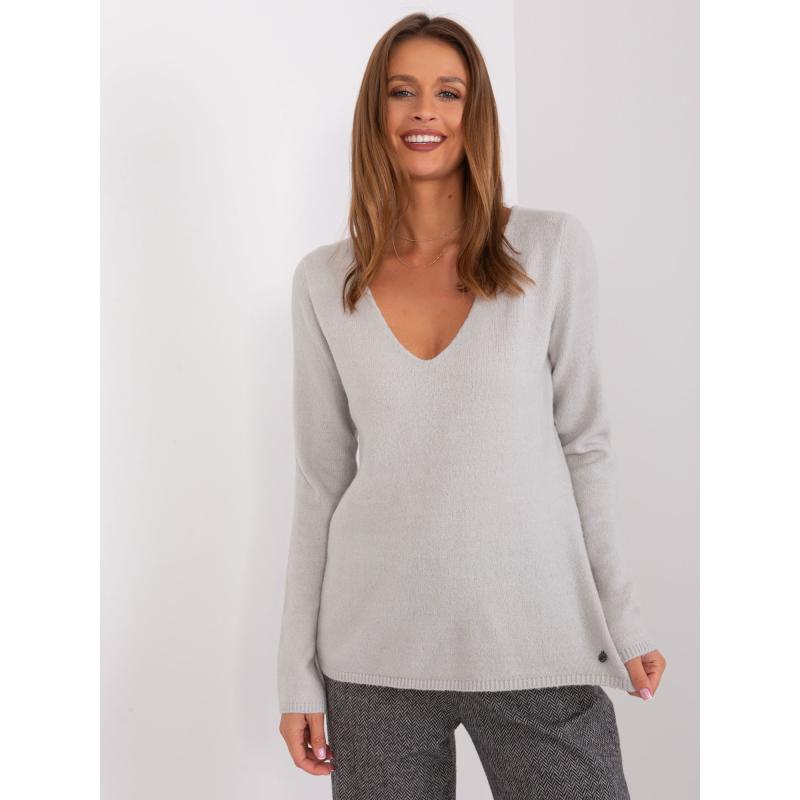 Trendi ruhadarab, amely melegen tart. Ez pontosan Női V-nyakú pulóver CHAY világosszürke.