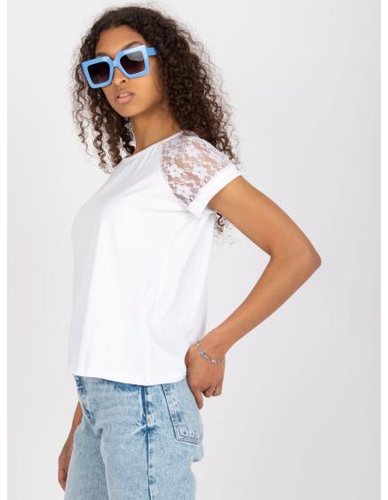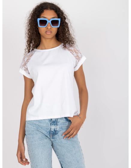 Női top nyakkivágással csíkos RUE PARIS fehér