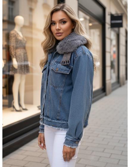 Női rövid szőrme kabát ZARAFIA, szürke