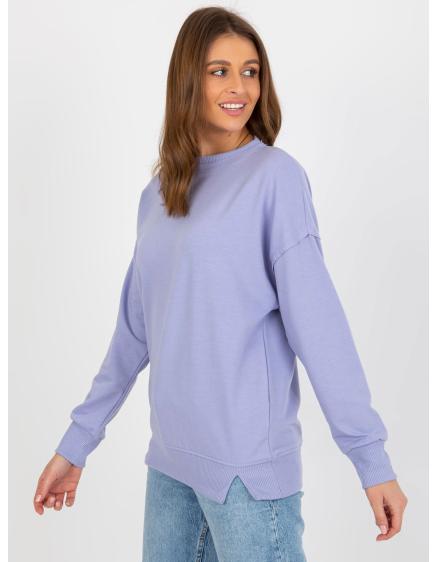 Világos lila, laza pulóver kapucni nélkül, hasítékokkal