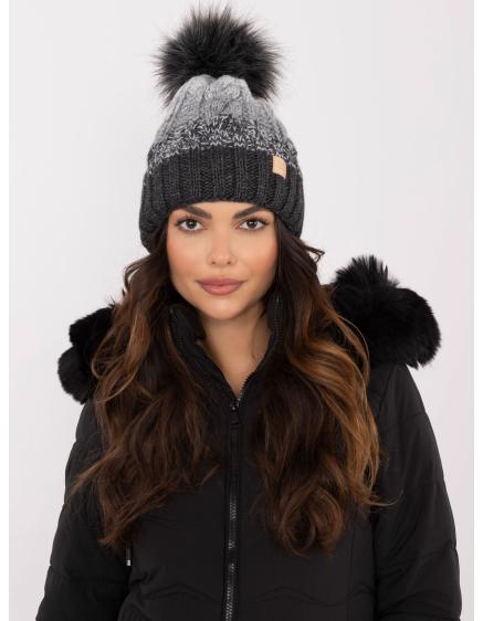 Női sapka pomponnal RUE PARIS sötétzöld és mustár színű