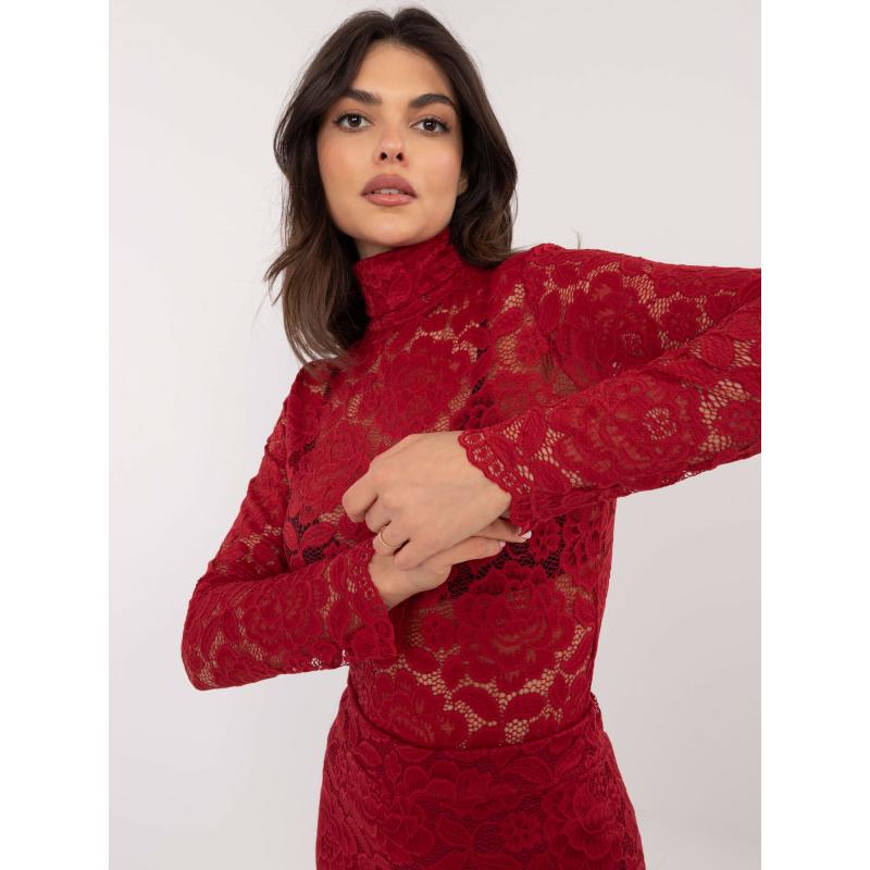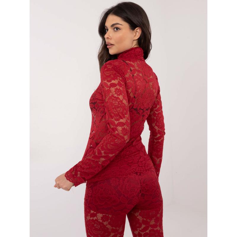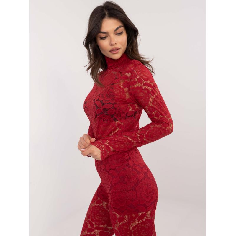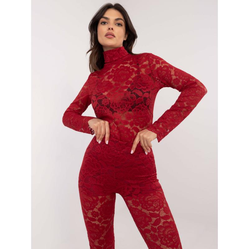 Piros, elegáns, bordázott, túlméretezett pulóver
