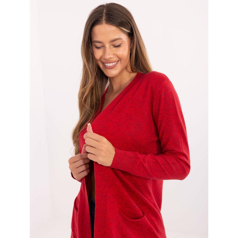 Piros női kardigán gombolás nélkül