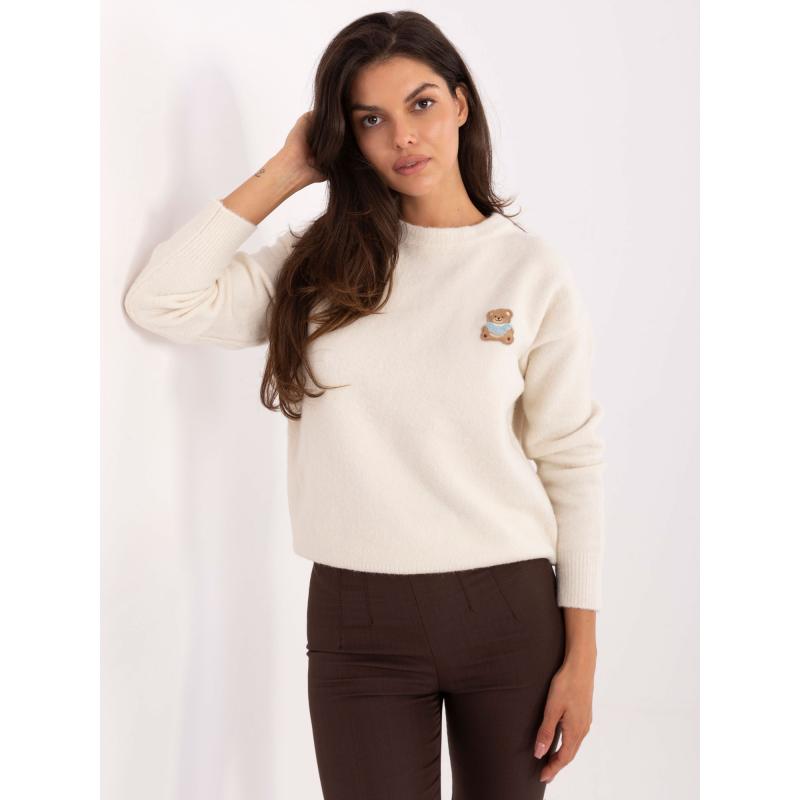 Klasszikus pulóver világos bézs színben, csíkokkal