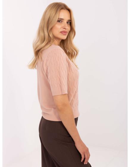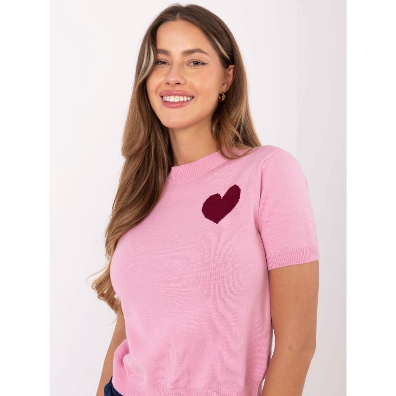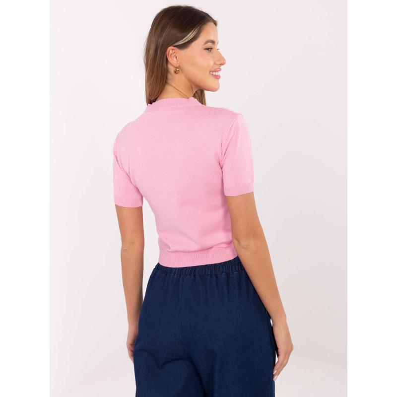 Rózsaszín női pulóver kerek nyakkivágással
