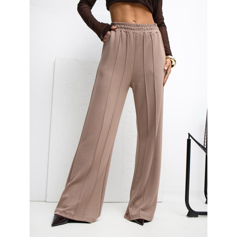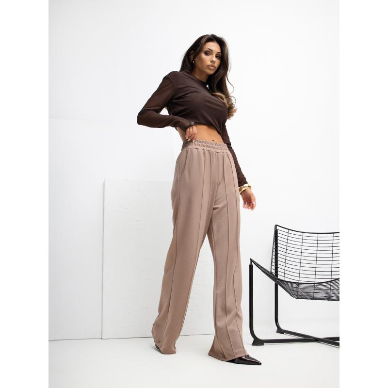 Sötét bézs színű, magas derekú nadrág RUE PARIS