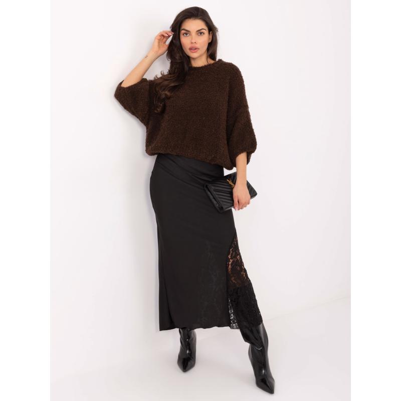 Sötétbarna bouclé pulóver gyapjú keverékkel
