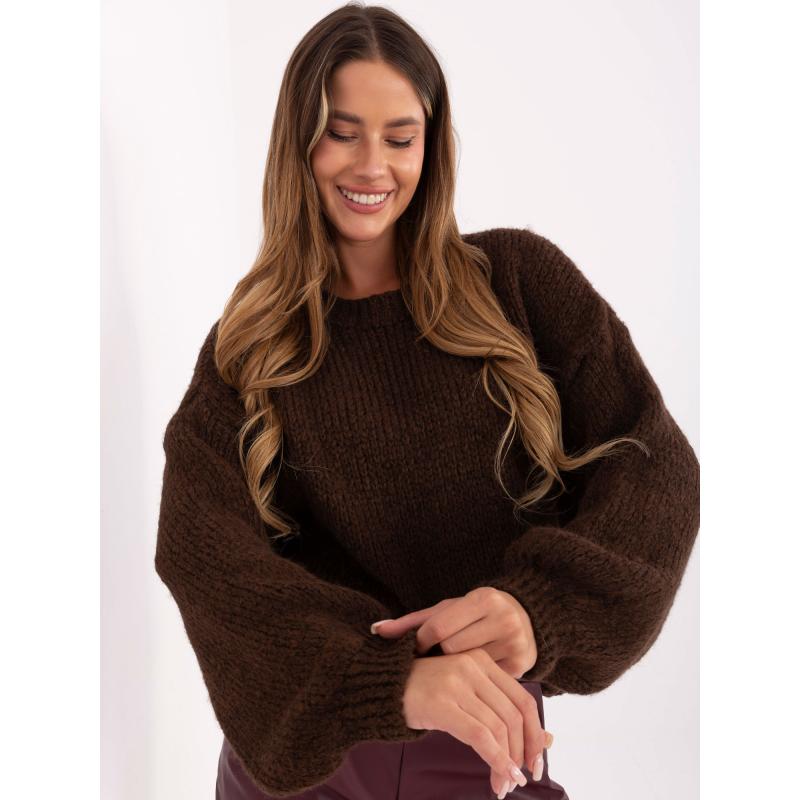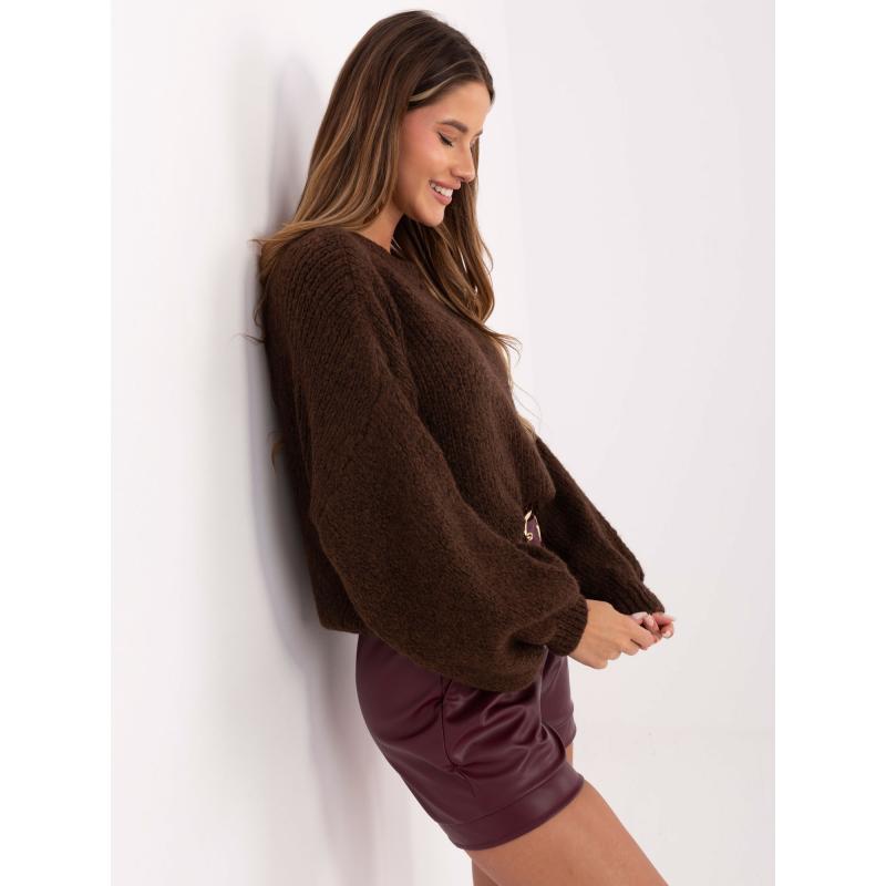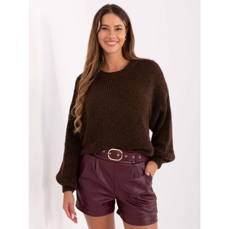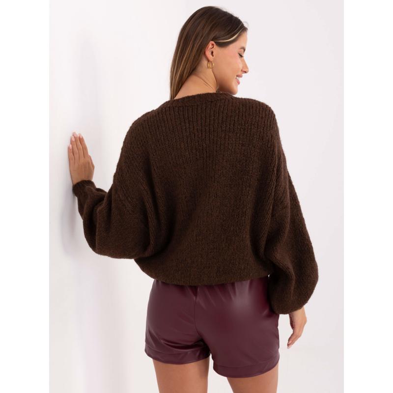 Sötétbarna női oversized gyapjú pulóver