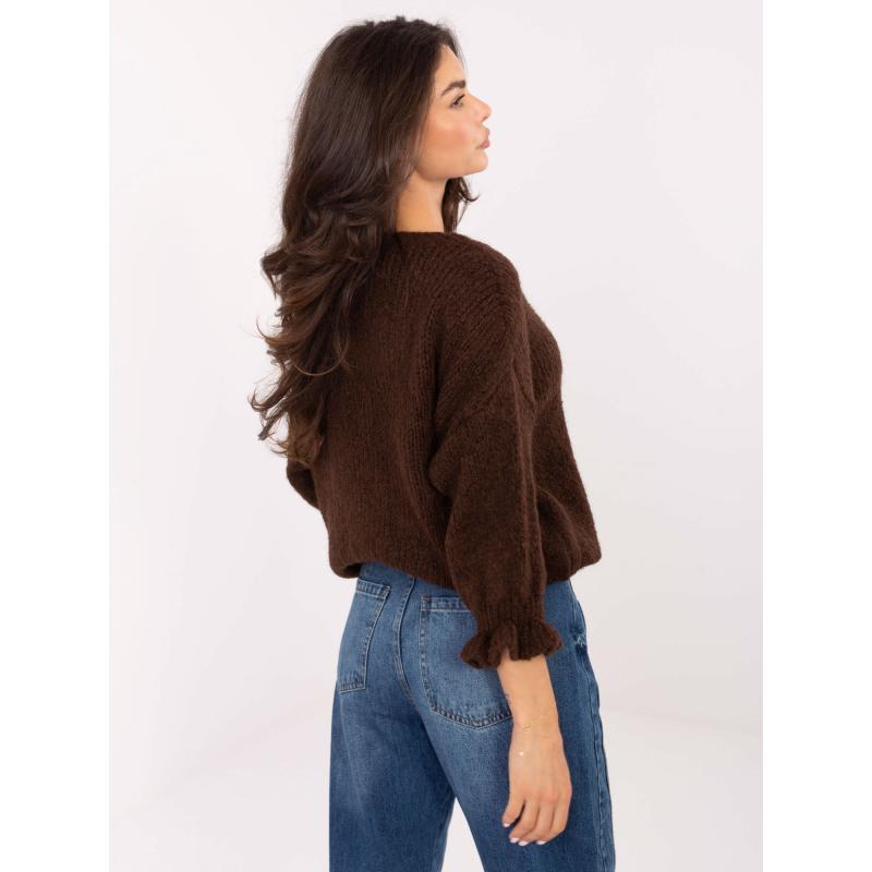Sötétbarna női oversized pulóver gyapjúval