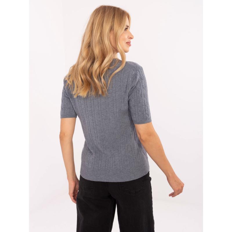Sötétbarna pulóver denevér ujjakkal és V-kivágással
