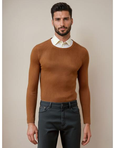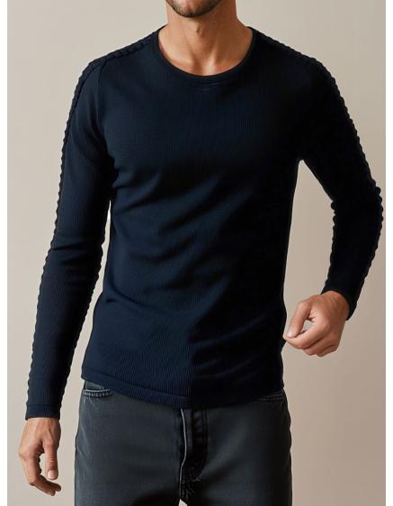 Klasszikus férfi BASIC kerek nyakú viszkóz pulóver - szürke V1
