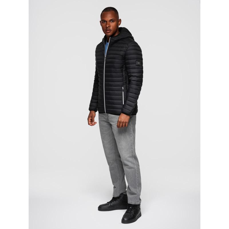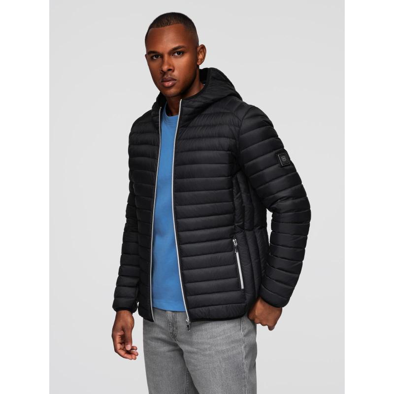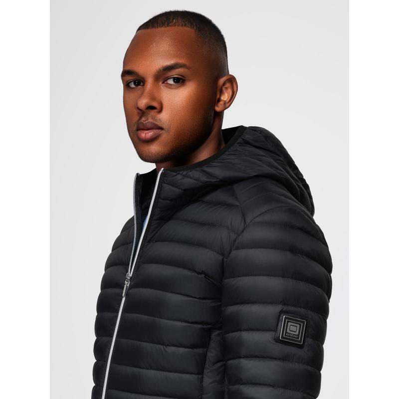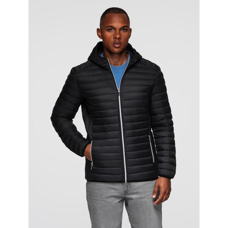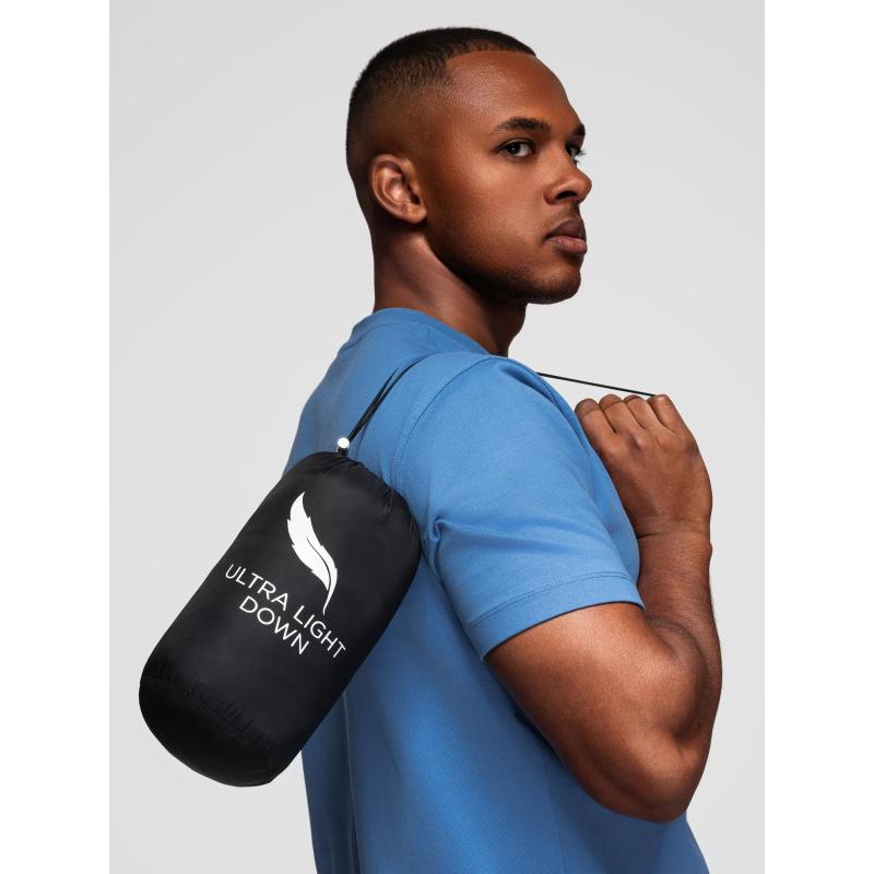 Ultra könnyű férfi kabát természetes tollból, tárolózsákkal – fekete V1 OM-JALP-0211