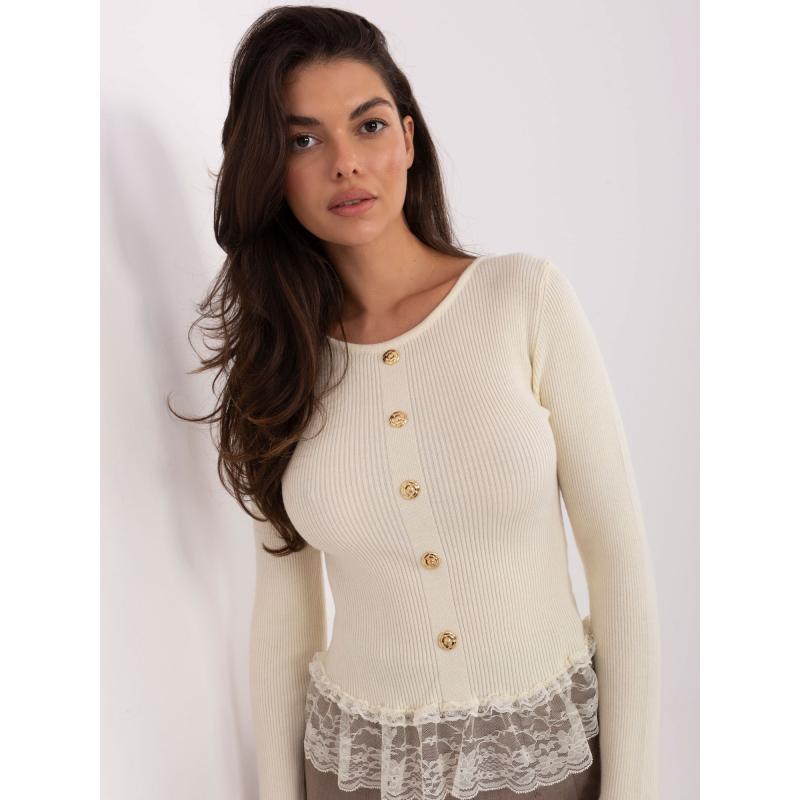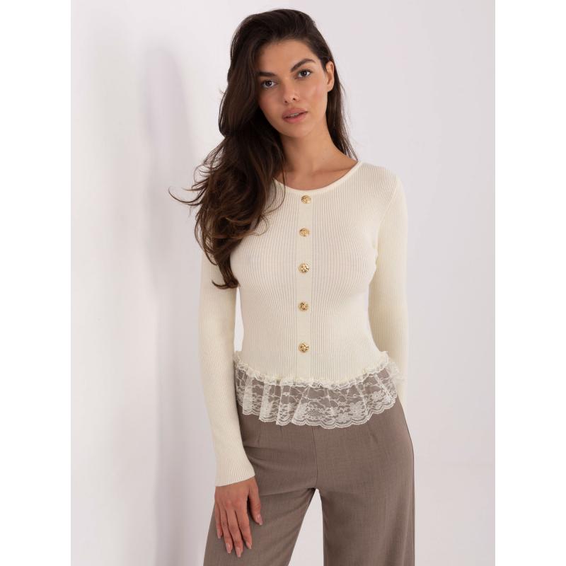 Vajas női pulóver volánokkal az alsó szegélyén