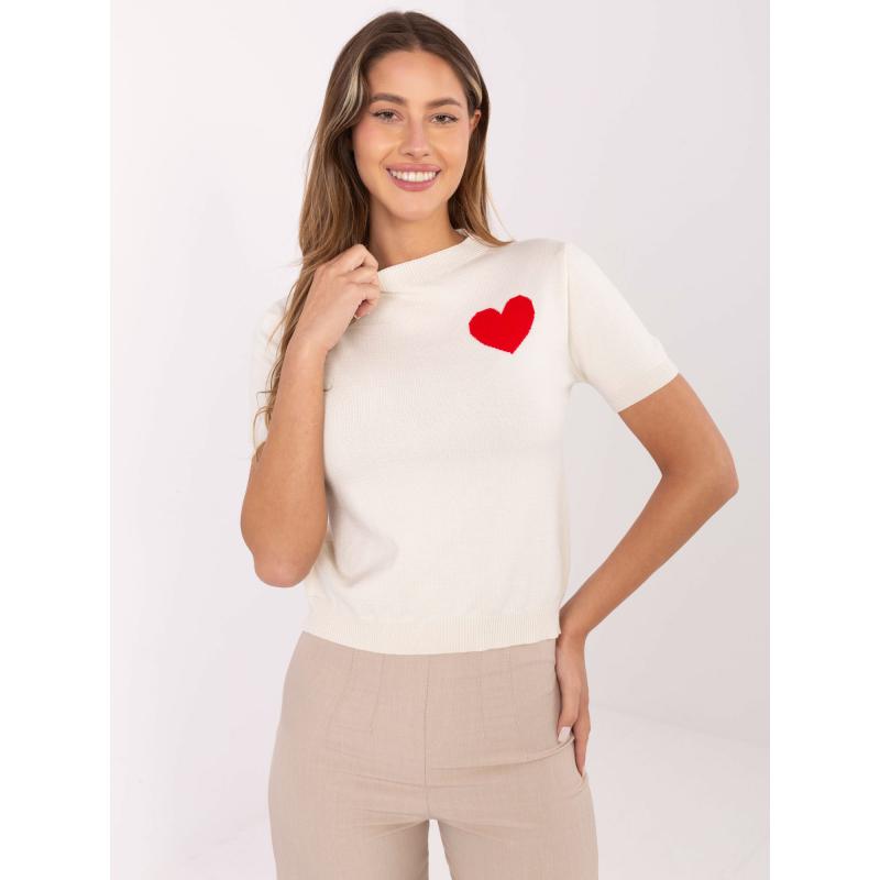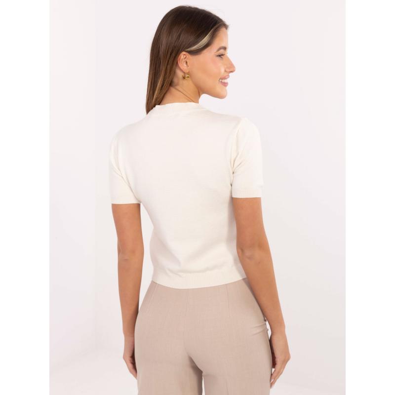 Világos bézs színű, testhezálló pulóver csíkokkal