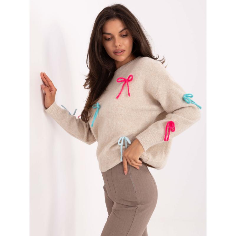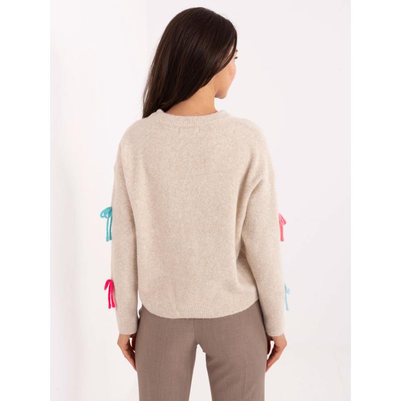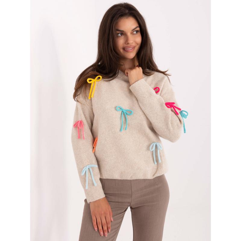 Klasszikus pulóver világos bézs színben, csíkokkal