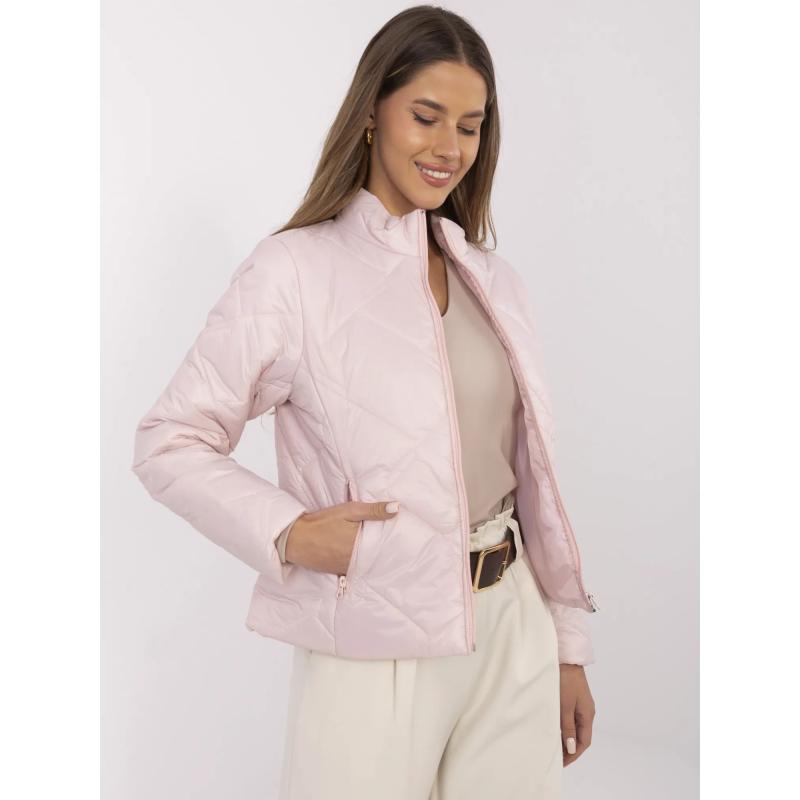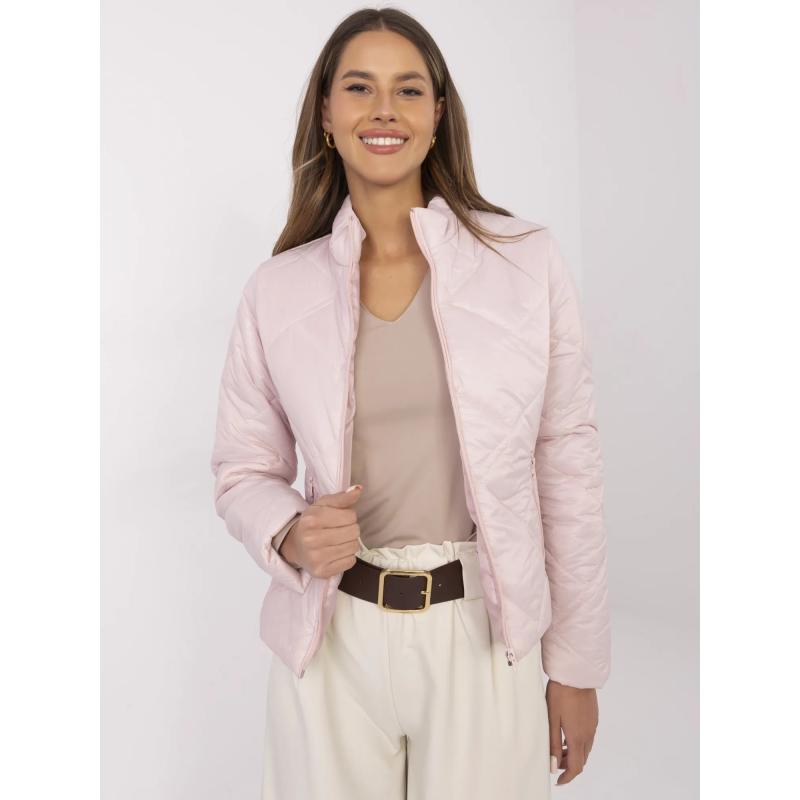 Világos rózsaszín női kabát cipzárral