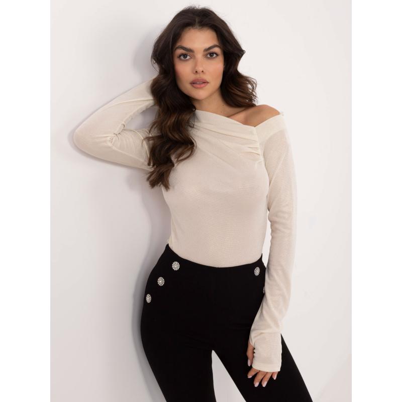 Világosbézs színű, fényes, szabott blúz